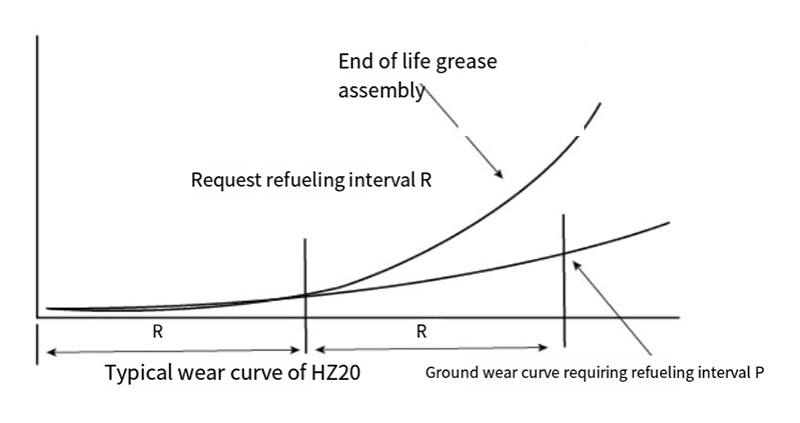 যখন HZ20 বুশ যেমন লিথিয়াম-ভিত্তিক বা সিলিকন গ্রীস প্রয়োগের সাথে ইনস্টল করা হয়। এর পরিষেবা জীবন কাজের অবস্থার অধীনে PV মান থেকে পরিবর্তিত হয়। উদাহরণস্বরূপ যখন PV মান প্রায় 2.5MPam/s হয়। এর পরিষেবা জীবন প্রায় 200 ঘন্টা হবে; যখন PV মান 0.1Mpa-m/s হয়, তখন এর পরিষেবা জীবন I0,0oohr এর উপরে হতে পারে (বিশদ বিবরণের জন্য টেবিলটি দেখুন) HZ20 বুশের লুব্রিকেশন রক্ষণাবেক্ষণের চক্র R এর পরিষেবা জীবনের প্রায় অর্ধেক। উদাহরণস্বরূপ, যখন PV=25Mpam/s. এটি প্রতি 100 ঘন্টা তেল-তৈলাক্ত করা প্রয়োজন।